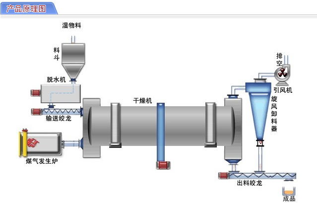 一、煤泥烘干機結(jié)構(gòu)及工作原理 煤泥烘干機主要由熱源、打散裝置、帶式上料機、進料機、回轉(zhuǎn)滾筒、帶式出料機、引風機、卸料器和配電柜構(gòu)成。該套設備工作原理如下:煤泥由于具有一定的粘性,在烘干過程中濕煤泥進入烘干機后分以下幾個工作區(qū):一是導料區(qū),濕煤泥進入此區(qū)與高溫熱風接觸迅速蒸發(fā)水分,物料在大導角的抄板抄動下,形不成粘結(jié)便被導入下一個工作區(qū); 二是清理區(qū),濕煤泥在此區(qū)被抄板抄抄起形成料幕狀態(tài),物料落下時易形成粘結(jié)滾筒壁現(xiàn)象,在此區(qū)由于設備設計有清掃裝置,清掃裝置便十分合理地清掃了內(nèi)壁粘附的物料,在這個過程中,清掃裝置對于物料 團球結(jié)塊也起破碎作用,從而增加了熱交換面積,提高了干燥速率;三是傾斜揚料板區(qū),濕煤泥在此區(qū)已 呈低水分松散狀態(tài),物料在此區(qū)已不具有粘結(jié)現(xiàn)象,經(jīng)過熱交換后物料達到所要求的水分狀態(tài),進入后 的出料區(qū);四是出料區(qū),滾筒在此區(qū)不設抄板,物料在此區(qū)滾動滑行至排料口,完成整個烘干過程。 二、主要特點 1、烘干機抗過載能力強,處理量大,燃料消耗少,干燥成本低; 2、采用順流干燥方式,煙氣與濕物料由同一側(cè)進入干燥機,可以利用高溫煙氣獲得很高的蒸發(fā)強度,烘干機溫度低,熱效率高; 3、可根據(jù)不同的物料性質(zhì)改變運行參數(shù),使物料在烘干機筒體內(nèi)能夠形成穩(wěn)定的全斷面料幕,質(zhì)熱交換更為充分; 4、新型給料、排料裝置,滾筒干燥機給料堵塞、不連續(xù)、不均勻和返料等現(xiàn)象,降低了除塵系統(tǒng)的負荷; 5、新型內(nèi)部結(jié)構(gòu),強化了對已分散物料的清掃和熱傳導作用,消除了筒體內(nèi)壁的沾粘現(xiàn)象,對物料水分、粘性的適應性更強; 6、烘干機實現(xiàn)了 “ 零水平推力 ” ,大大減少了擋托輪的磨損,筒體運轉(zhuǎn)平穩(wěn)可靠; 7、烘干機采用 “ 調(diào)心式托輪裝置 ” ,使托輪和滾圈的配合永遠呈線性接觸,從而大大降低了磨損和動力損耗; 8、可根據(jù)用戶要求控制產(chǎn)品粒度和水分,烘干煤泥時產(chǎn)品水分可達 8% 以下,粒度可控制在 8mm 以下。 三、工藝流程圖
