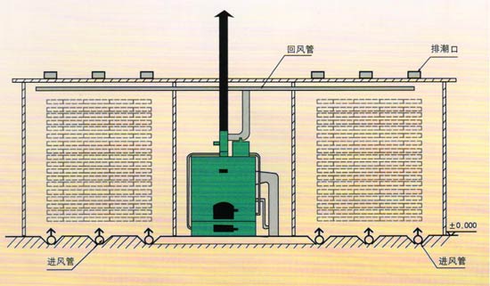 熱風(fēng)式干燥設(shè)備工作原理是利用燃燒產(chǎn)生的熱能,加熱窯內(nèi)的空氣,由熱風(fēng)爐頂部主風(fēng)機(jī)將窯內(nèi)的空氣通過管道吸入爐體,將空氣加熱。再通過管道,送入窯內(nèi),由窯內(nèi)的循環(huán)風(fēng)機(jī)不斷的循環(huán)對窯內(nèi)的木材均勻加熱。木材干燥過程中如需要蒸汽,可由熱風(fēng)爐內(nèi)的蒸汽發(fā)生器提供,如果是一爐兩房或多房時,管道上裝有插閥,通過插閥的調(diào)節(jié)來控制窯內(nèi)的溫度。在干燥的過程中,由于木材要進(jìn)行排濕,在窯頂上留有排濕孔(根據(jù)地區(qū)而定)和裝有抽濕機(jī),用來調(diào)節(jié)排濕的快慢.